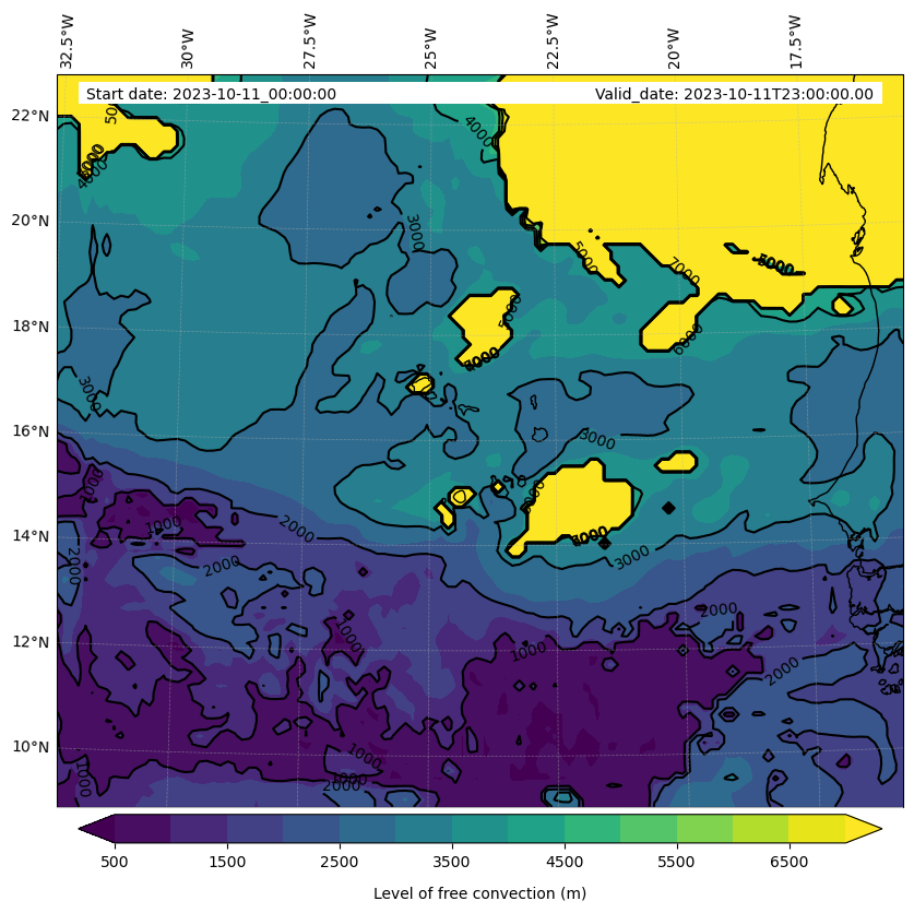 - Level of free convection (m)