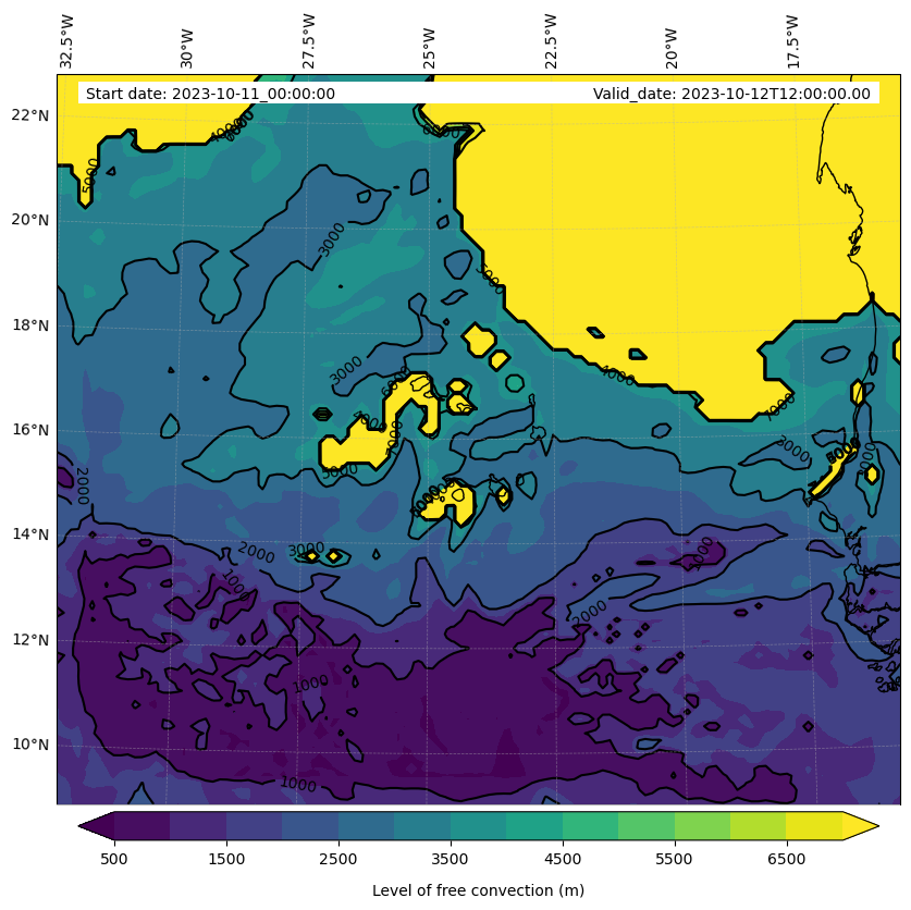 - Level of free convection (m)