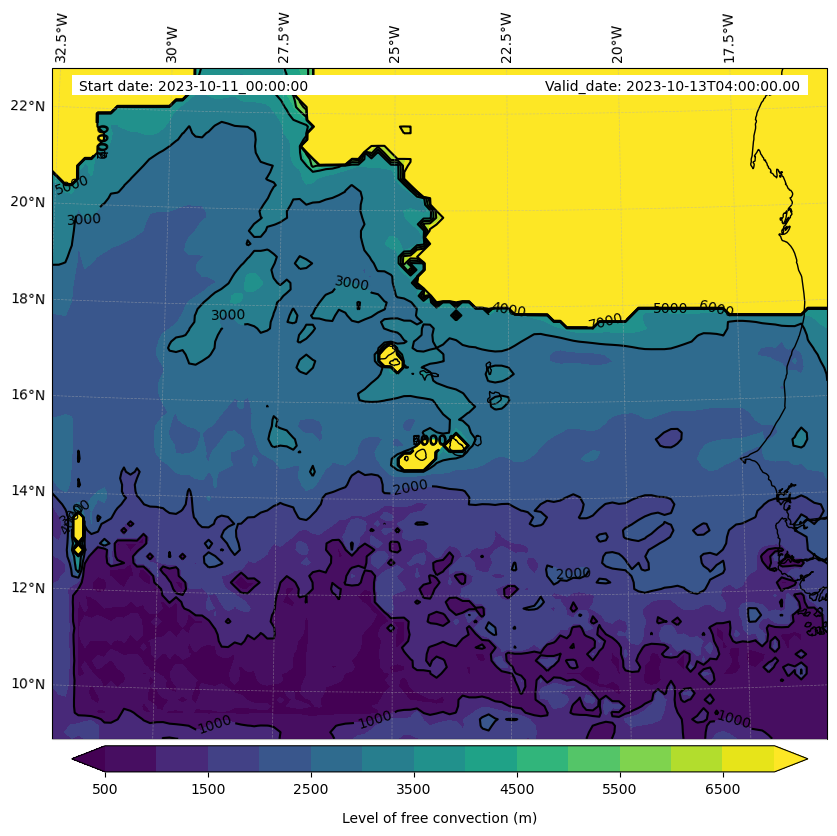• Level of free convection (m)