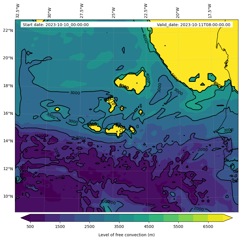 - Level of free convection (m)