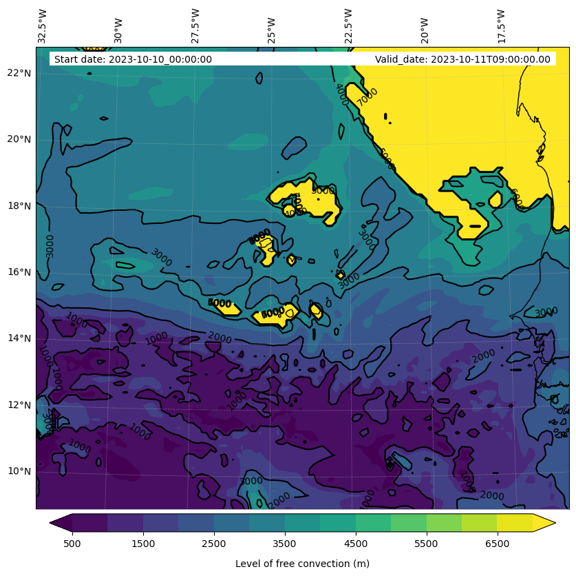 • Level of free convection (m)