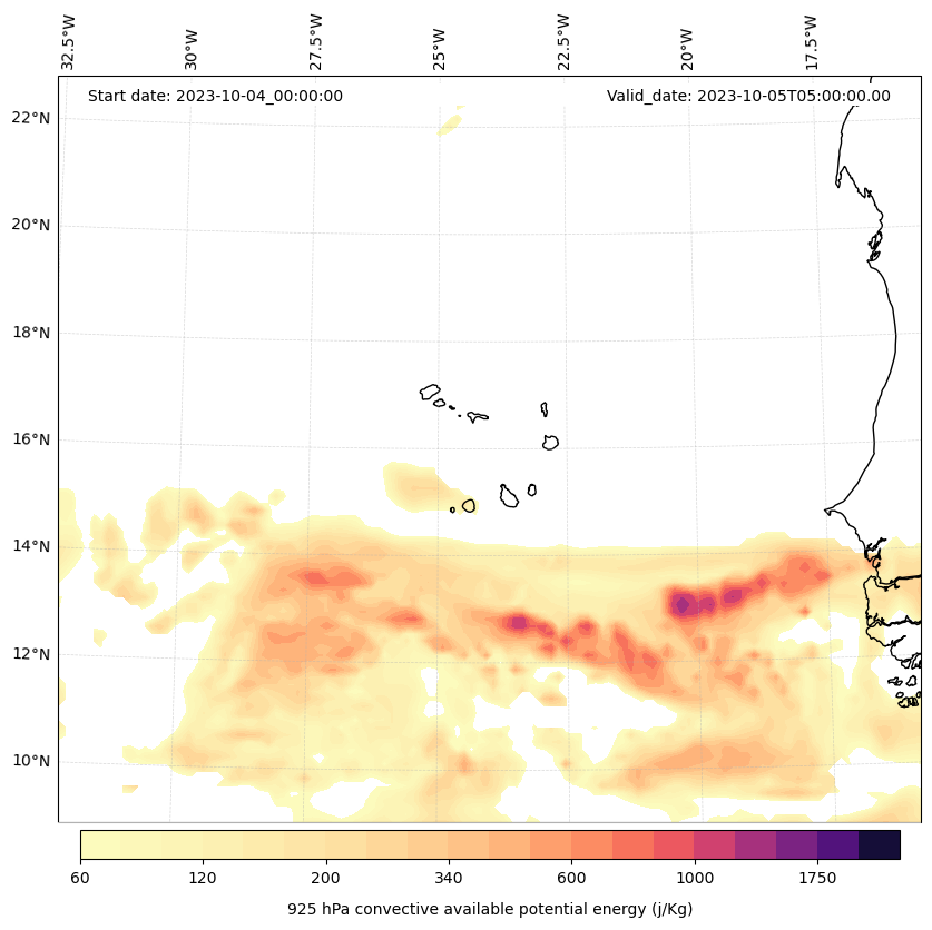 - Maximum CAPE (J/Kg)