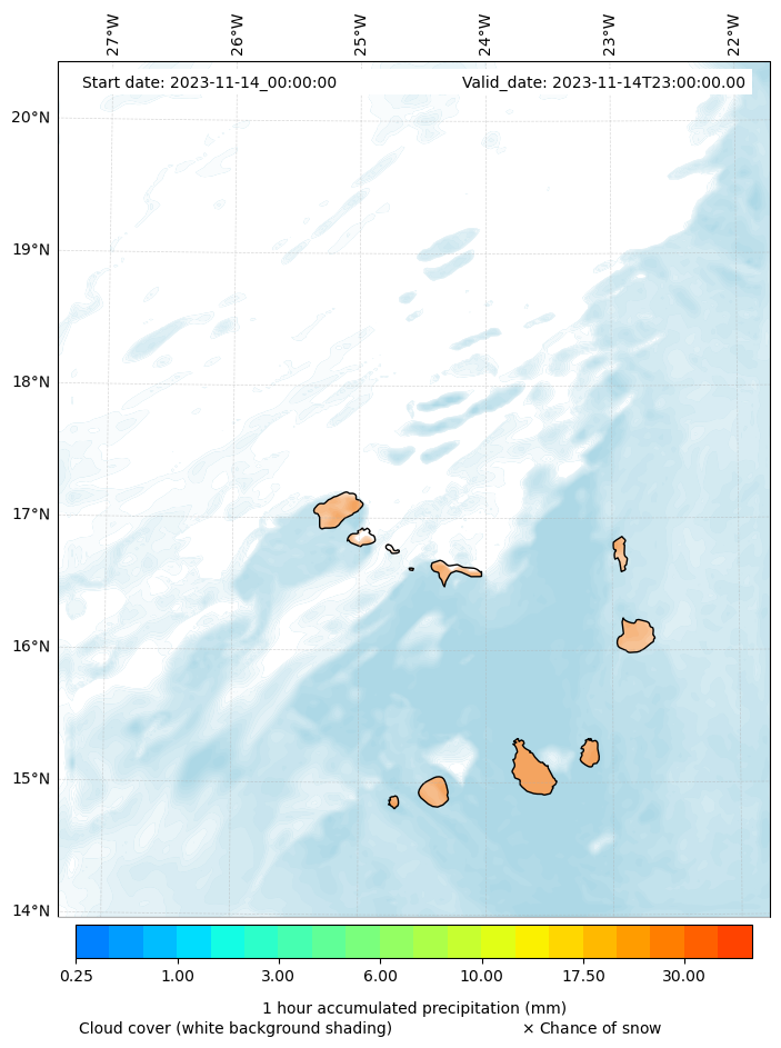 - Snow mixing ratio (g kg¯¹)
