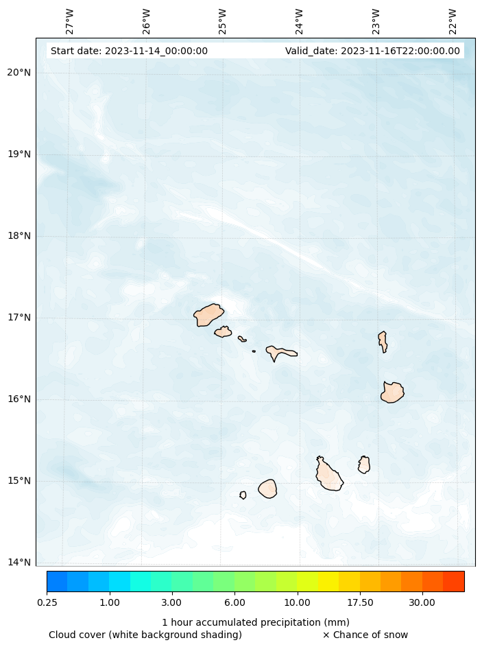 - Snow mixing ratio (g kg¯¹)