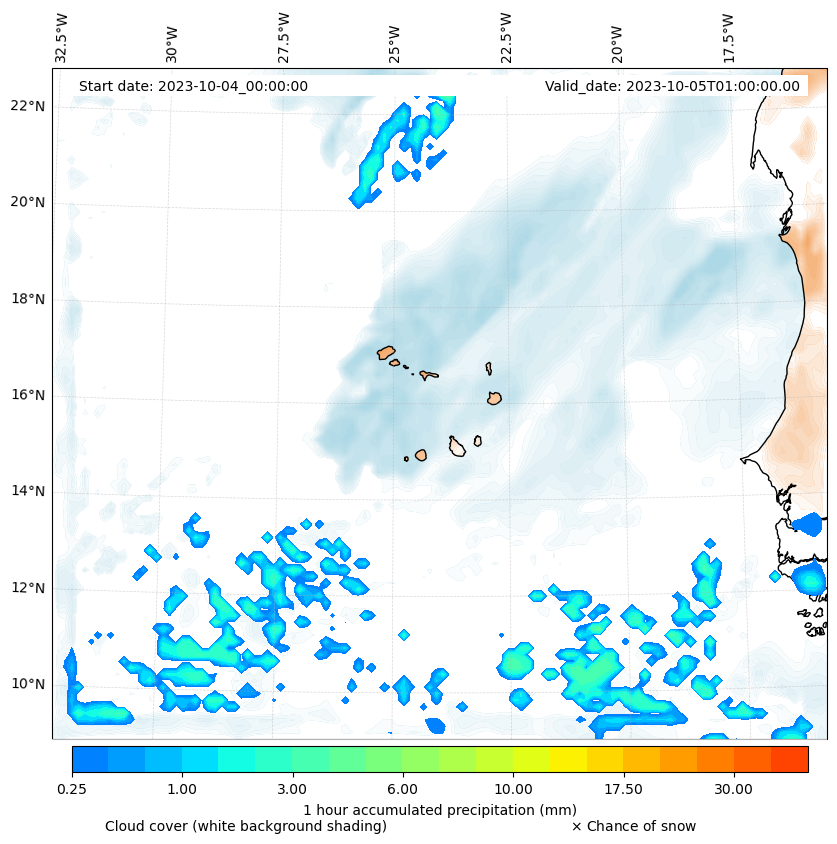 - Snow mixing ratio (g kg¯¹)