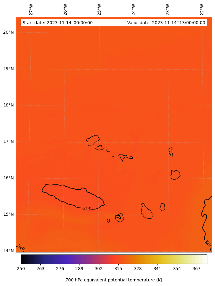 - Equivalent Potential Temperature (K)