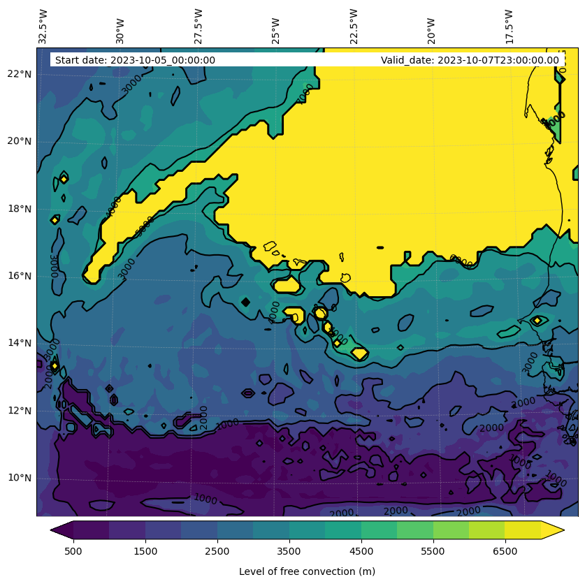 - Level of free convection (m)