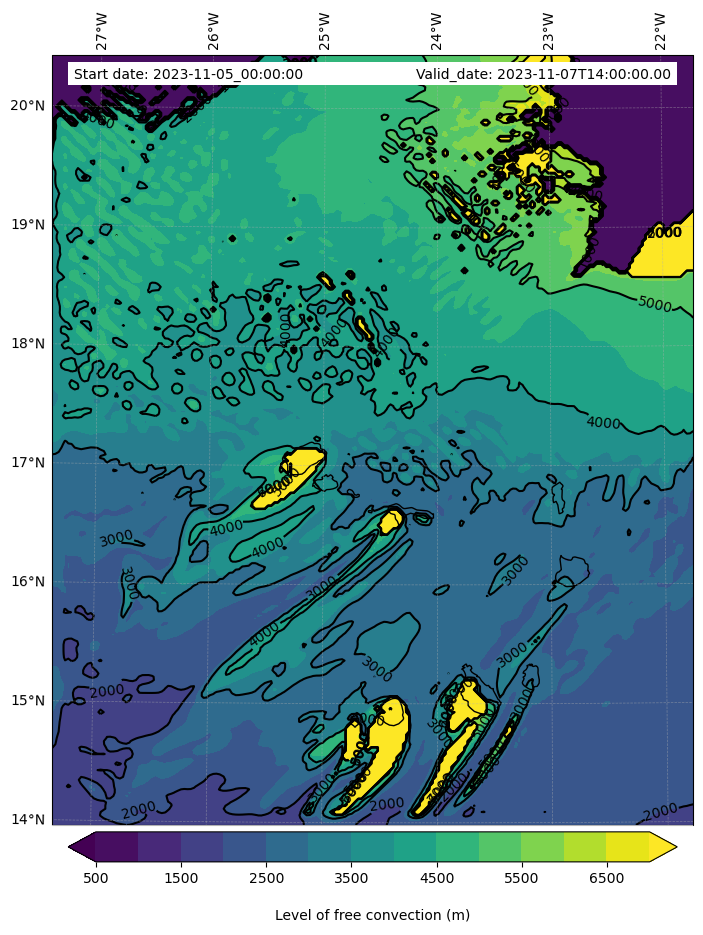 - Level of free convection (m)