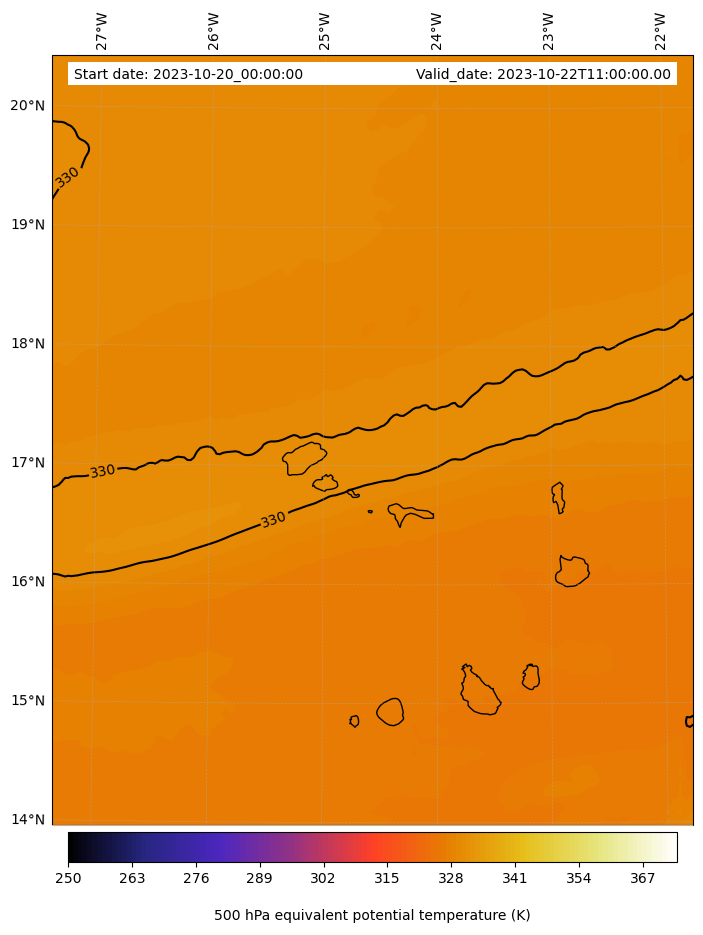 - Equivalent Potential Temperature (K)