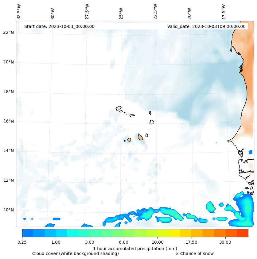 - Snow mixing ratio (g kg¯¹)