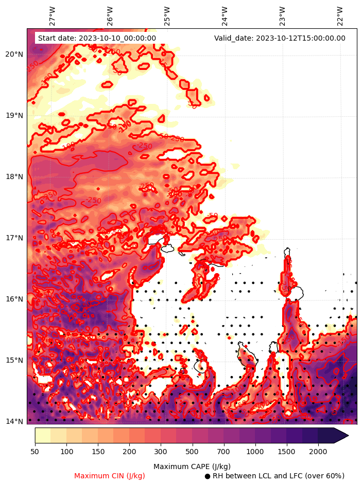• Maximum CAPE (J/Kg)