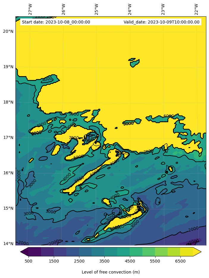 - Level of free convection (m)
