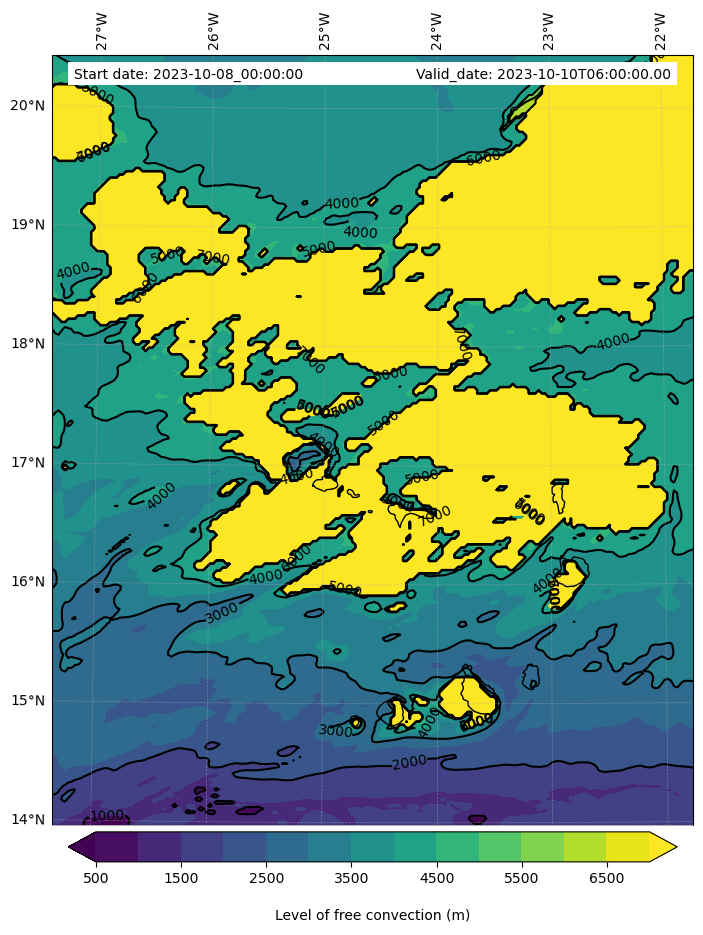 - Level of free convection (m)