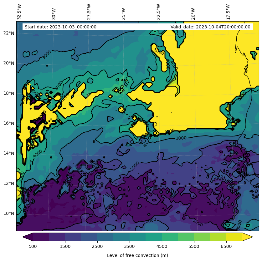 • Level of free convection (m)