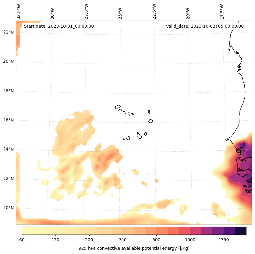- Maximum CAPE (J/Kg)