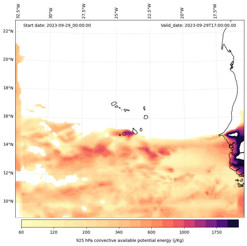 - Maximum CAPE (J/Kg)