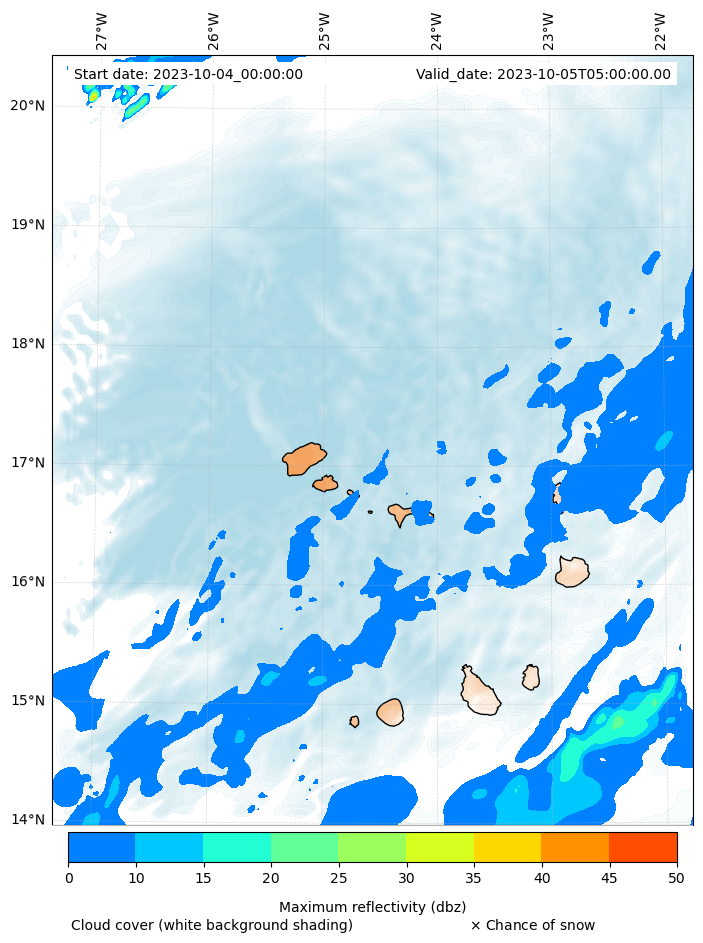 - Snow mixing ratio (g kg¯¹)