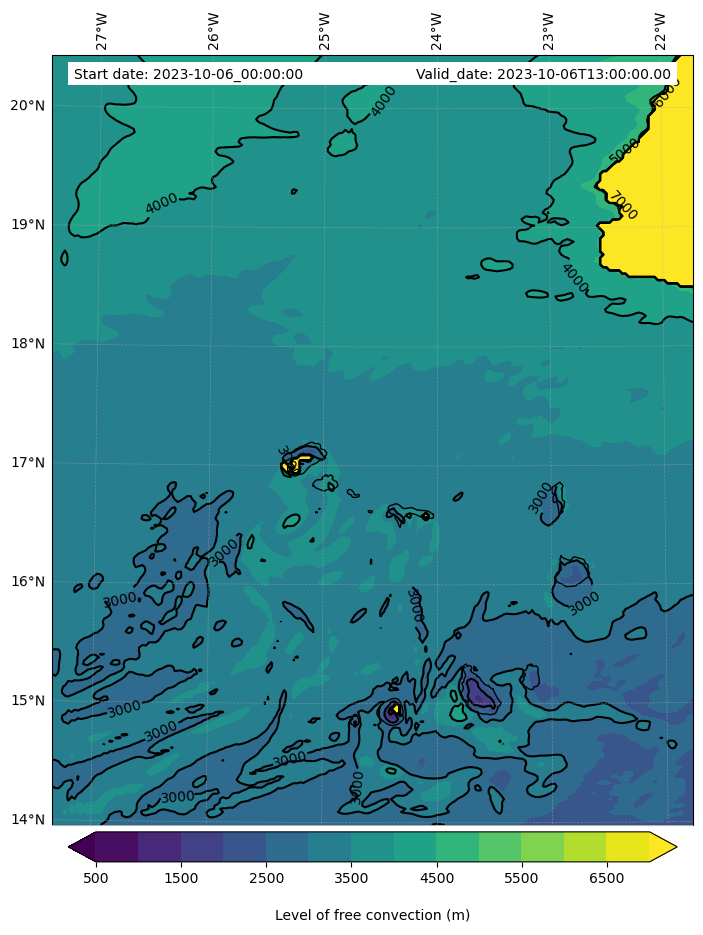 - Level of free convection (m)