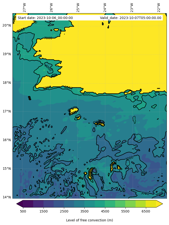 - Level of free convection (m)