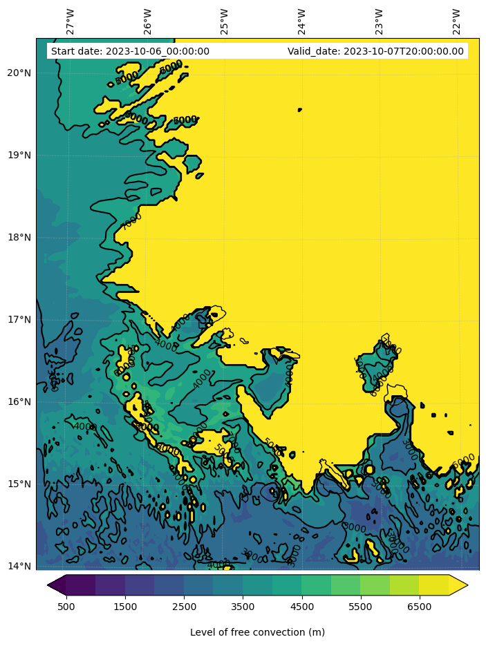 • Level of free convection (m)