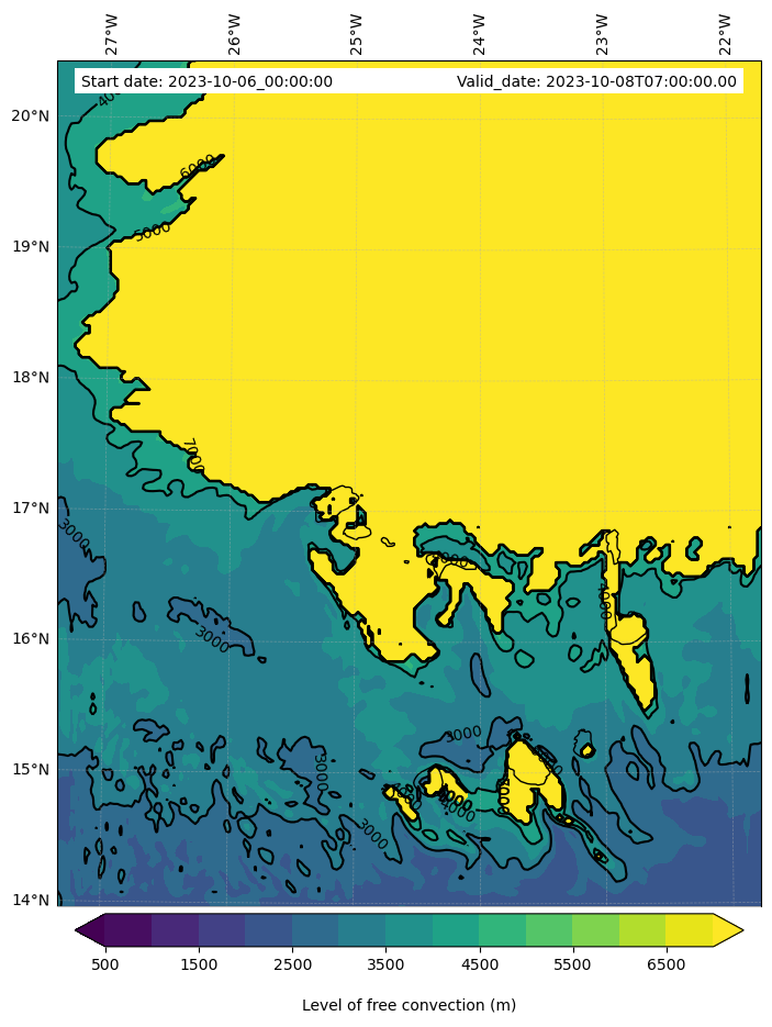 • Level of free convection (m)