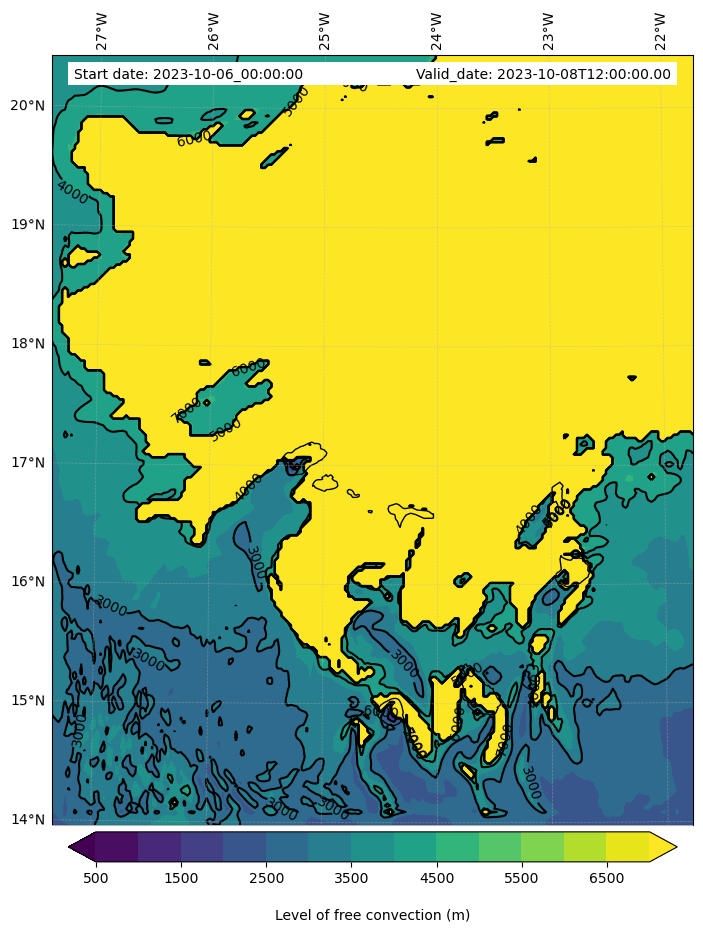 • Level of free convection (m)