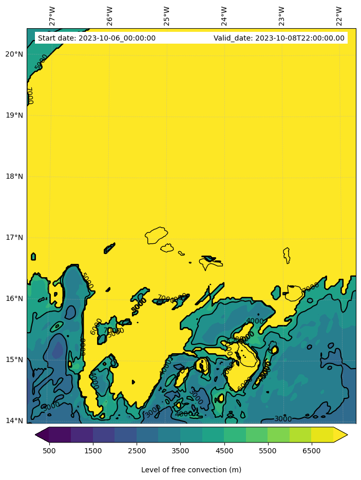 - Level of free convection (m)