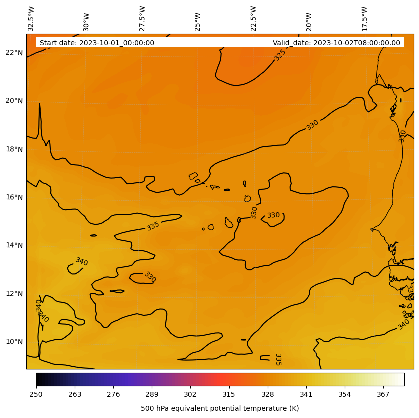 - Equivalent Potential Temperature (K)