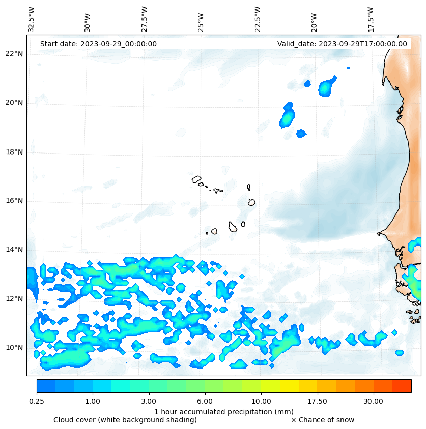 - Snow mixing ratio (g kg¯¹)