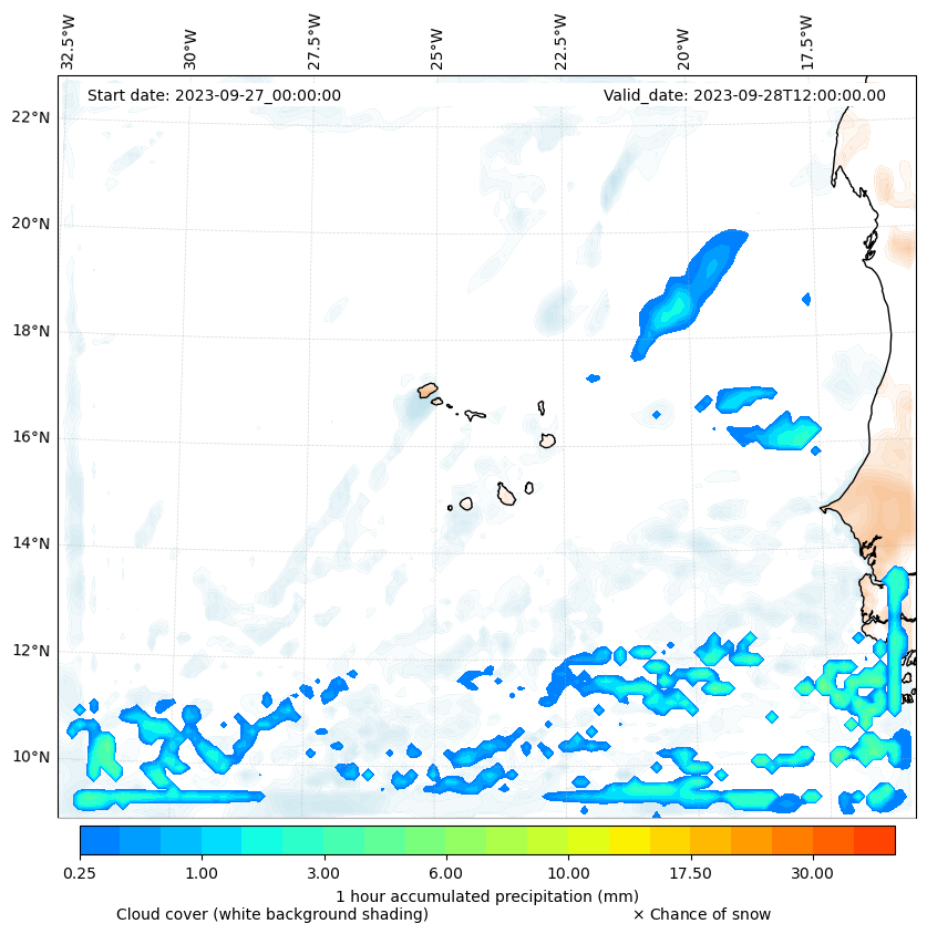 - Snow mixing ratio (g kg¯¹)