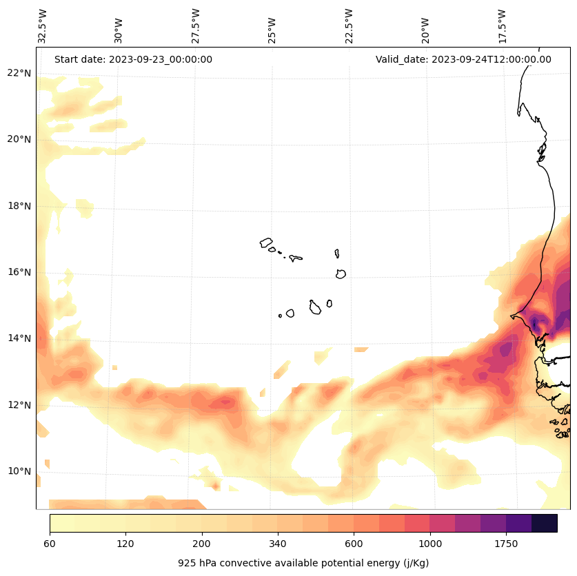 - Maximum CAPE (J/Kg)