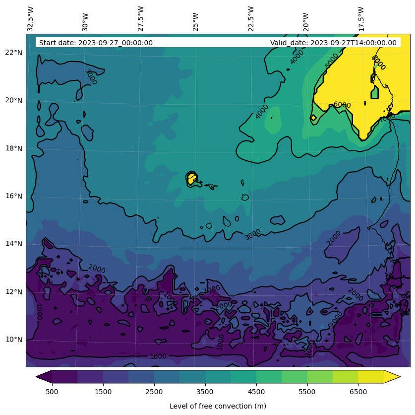 - Level of free convection (m)