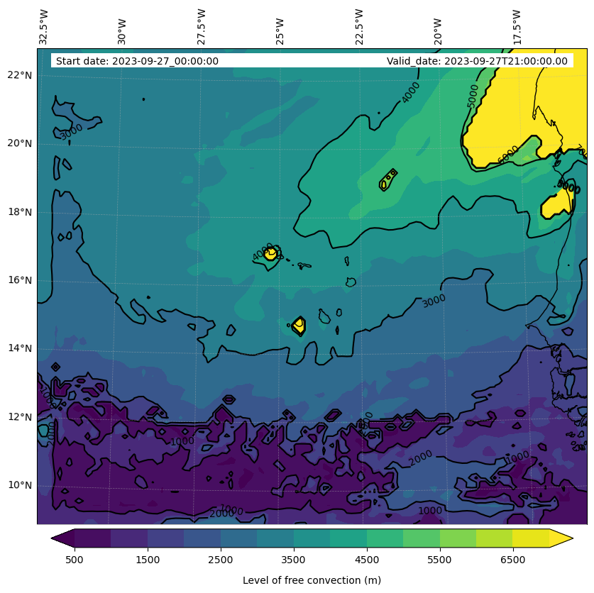 - Level of free convection (m)