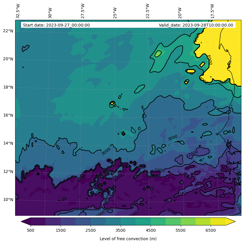 - Level of free convection (m)