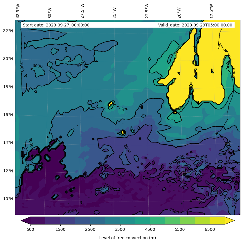 - Level of free convection (m)