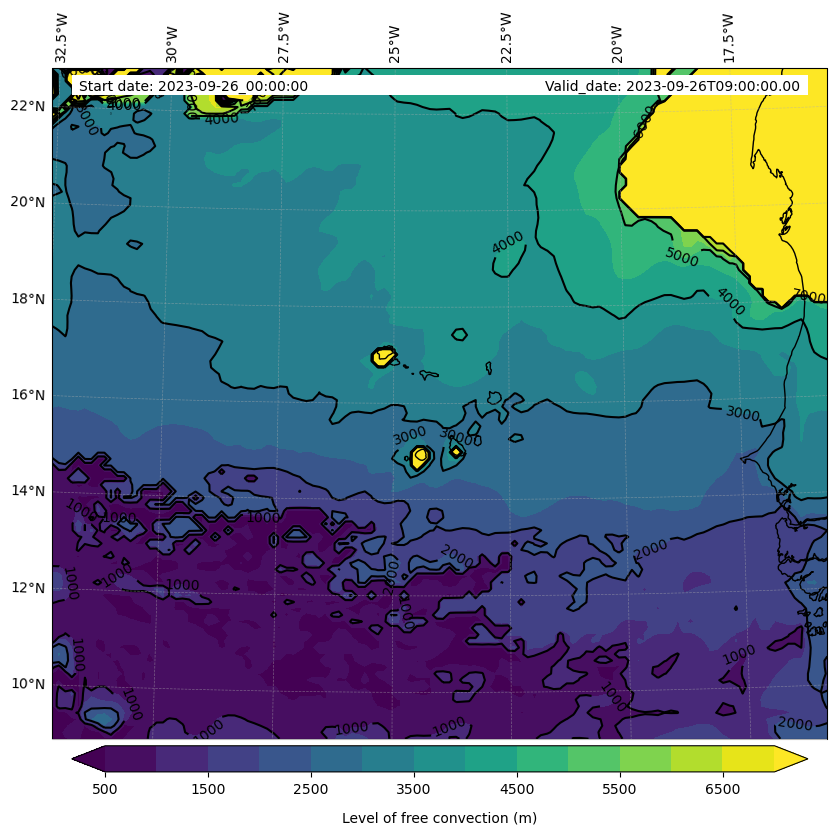 - Level of free convection (m)