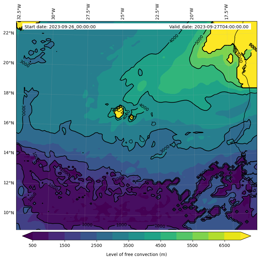- Level of free convection (m)