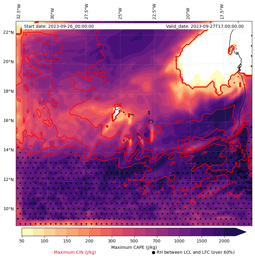 - Maximum CAPE (J/Kg)