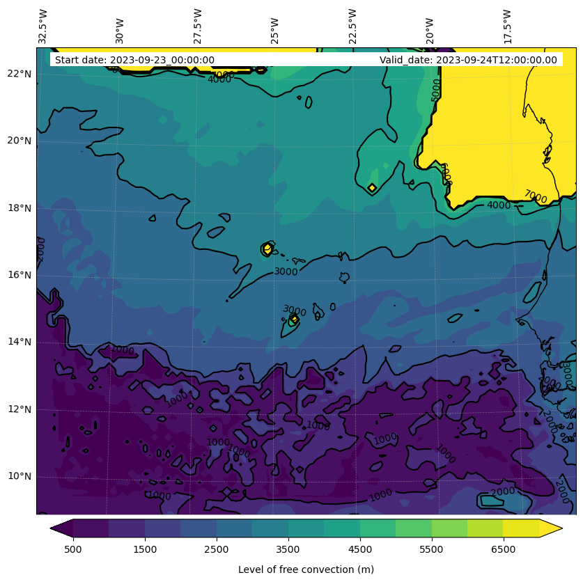 - Level of free convection (m)
