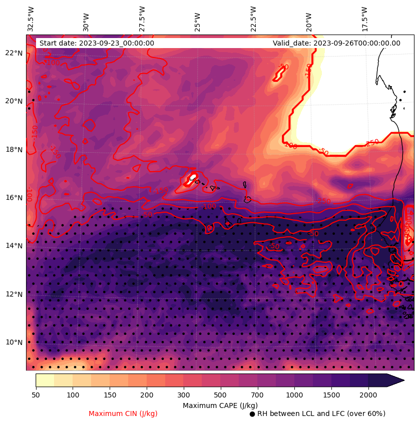 • Maximum CAPE (J/Kg)