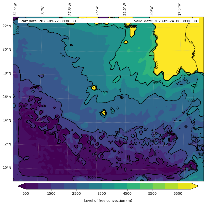 • Level of free convection (m)