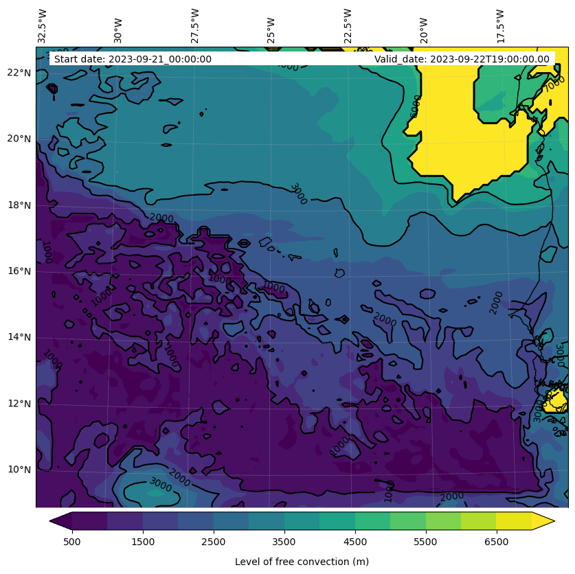 - Level of free convection (m)