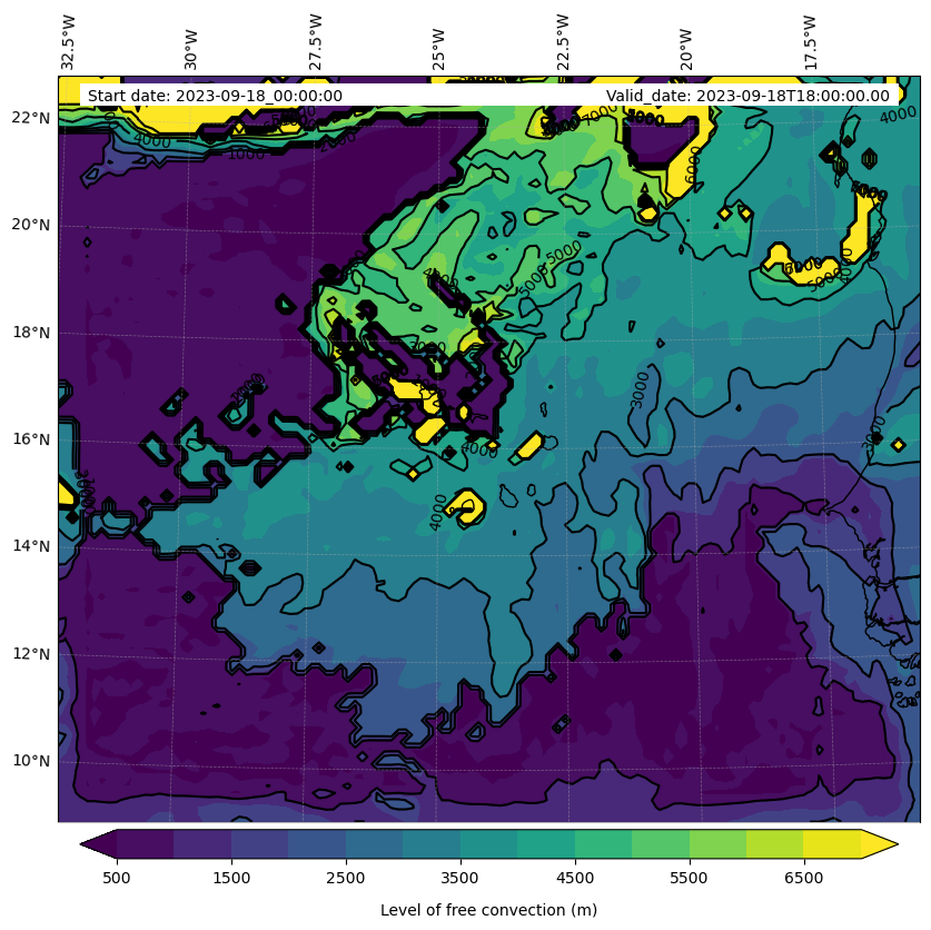 - Level of free convection (m)