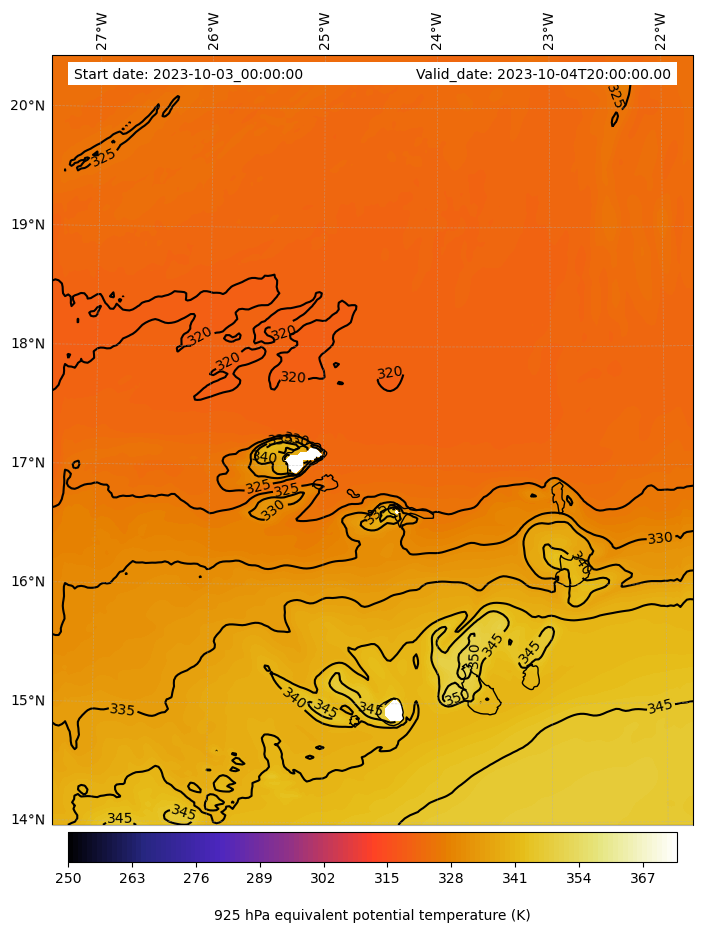 - Equivalent Potential Temperature (K)