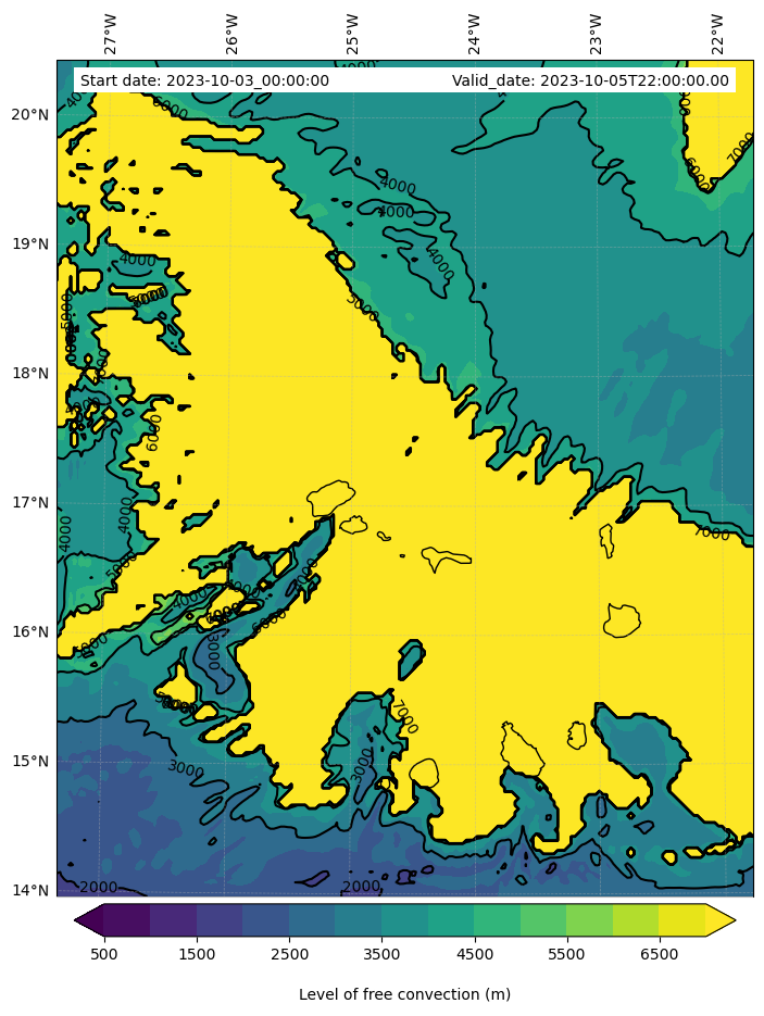 - Level of free convection (m)