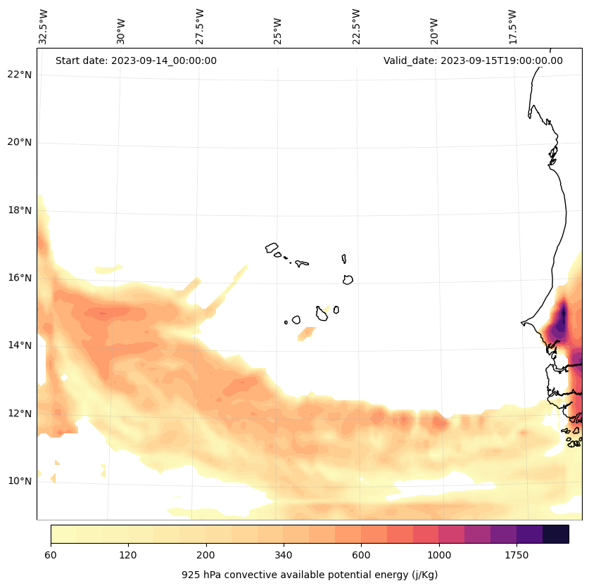 - Maximum CAPE (J/Kg)