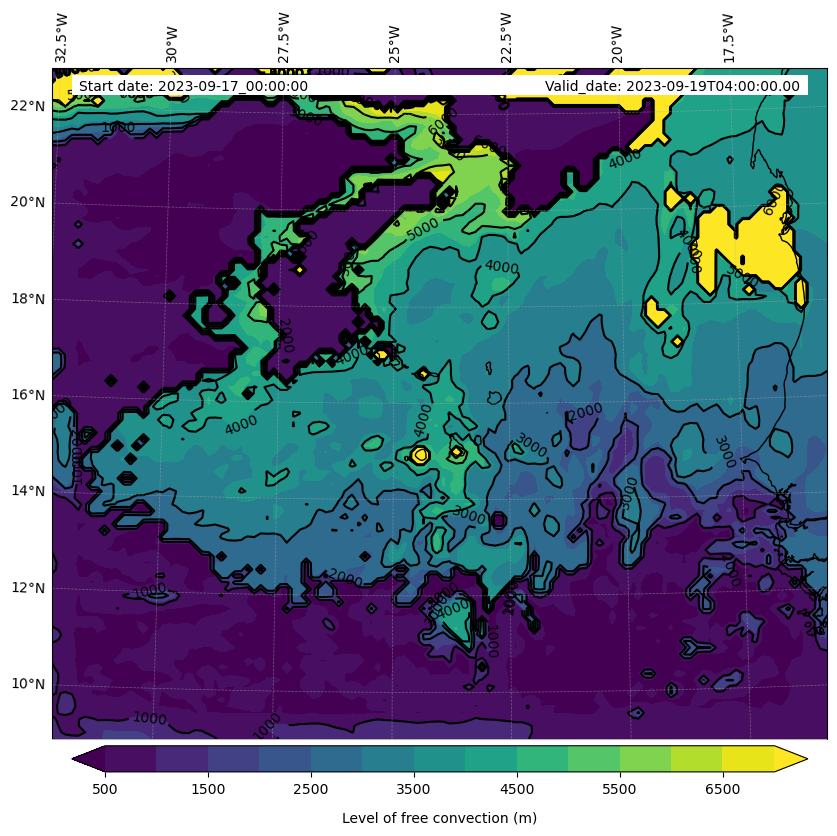 - Level of free convection (m)