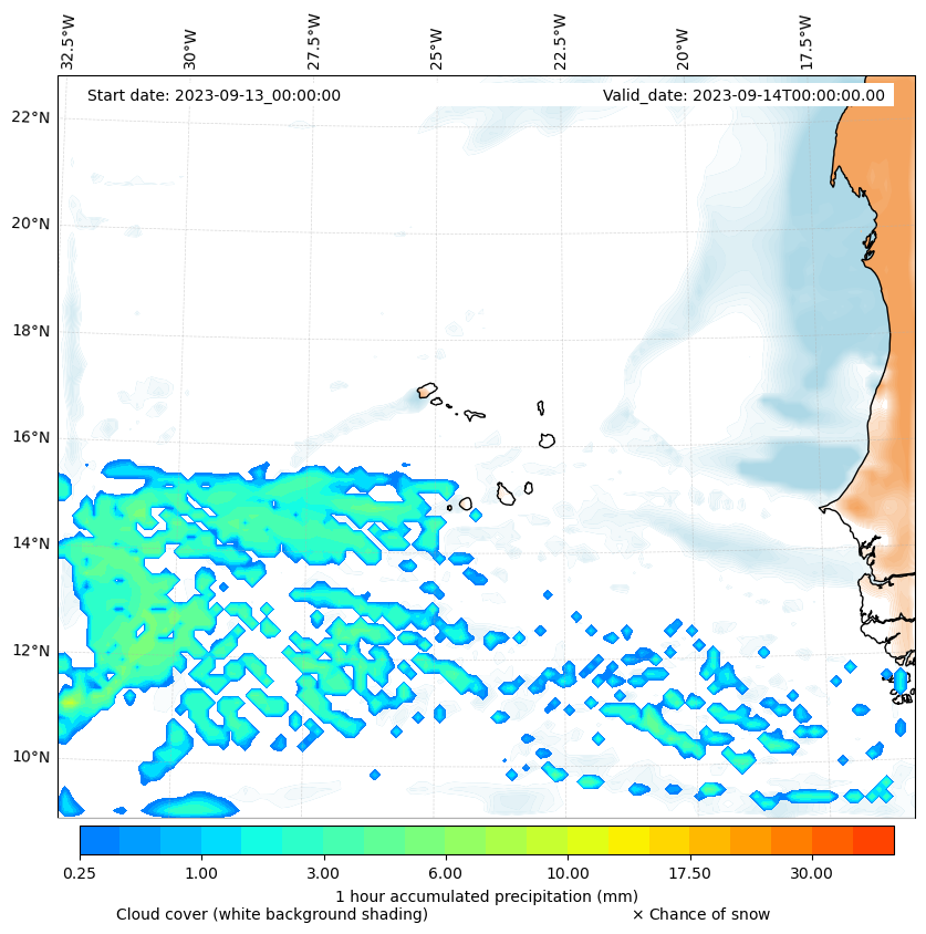 - Snow mixing ratio (g kg¯¹)