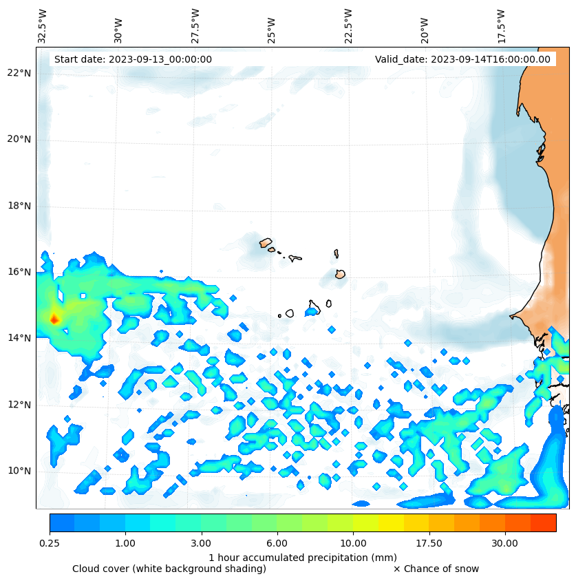 - Snow mixing ratio (g kg¯¹)