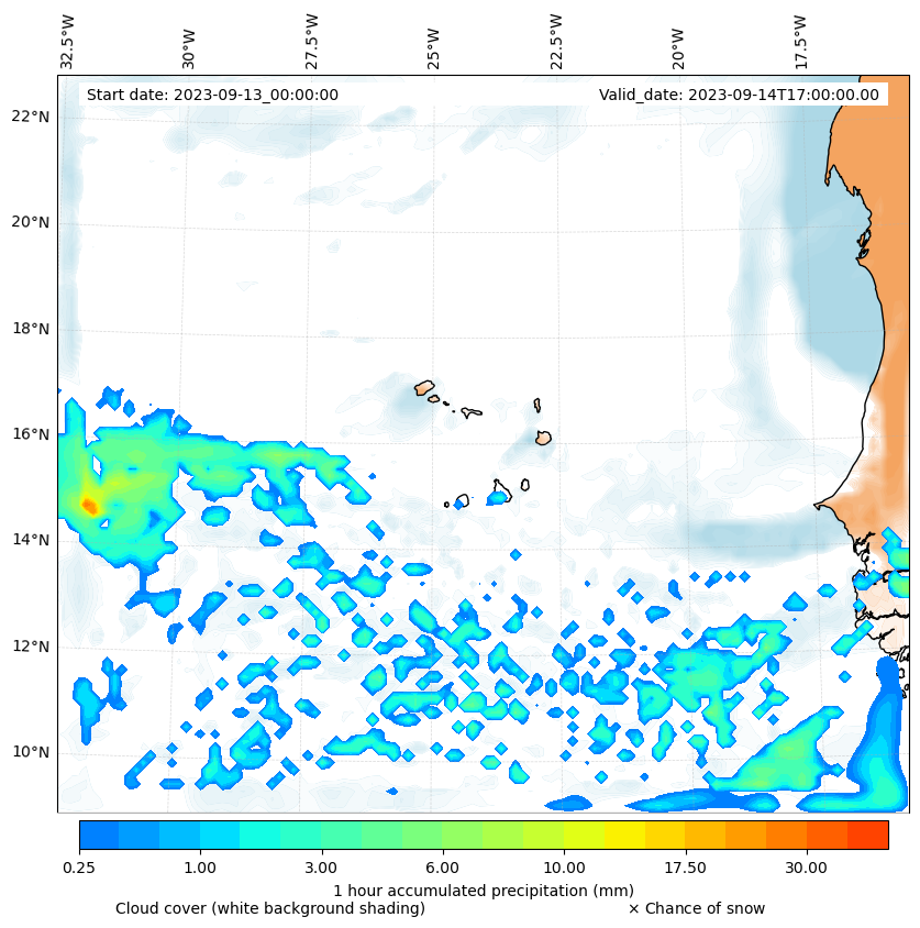 - Snow mixing ratio (g kg¯¹)